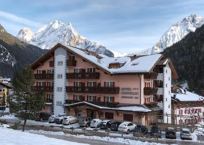 ジャグジー、屋内プール とサンルームを提供する3つ星ホテル クリスタロ カナツェーイは、カナツェーイのCentro Storico Canazeiから徒歩で5分に位置しています。 禁煙ホテルは顧客用のà la carte restaurantレストランとプールがあります。
